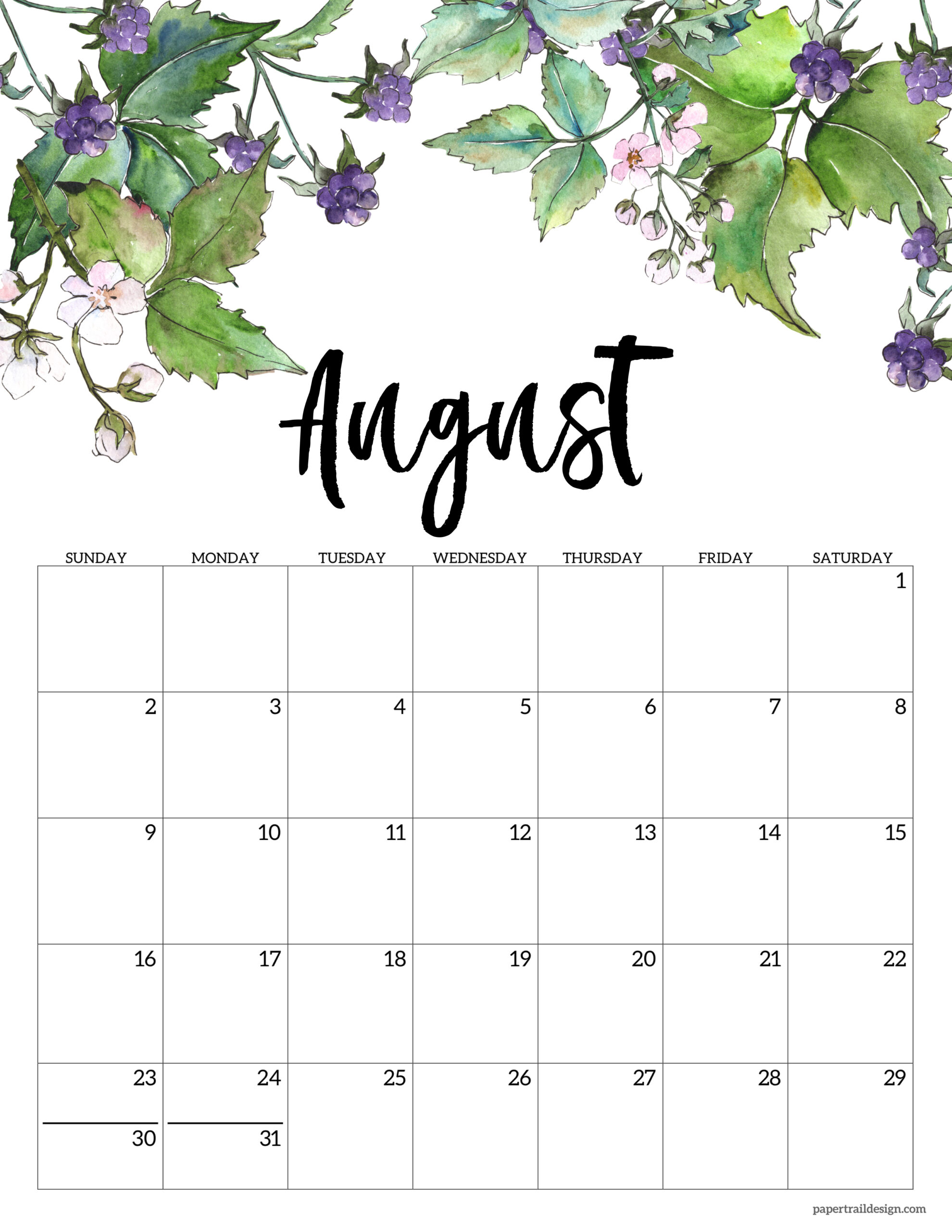 This floral 2026 calendar has a simple yet classy vibe to it that we love. All of our printables are free to print and are hassle free. No need to sign up for our email list. Just click and print. Super simple. And you’ll love using our calendar pages all of 2026.