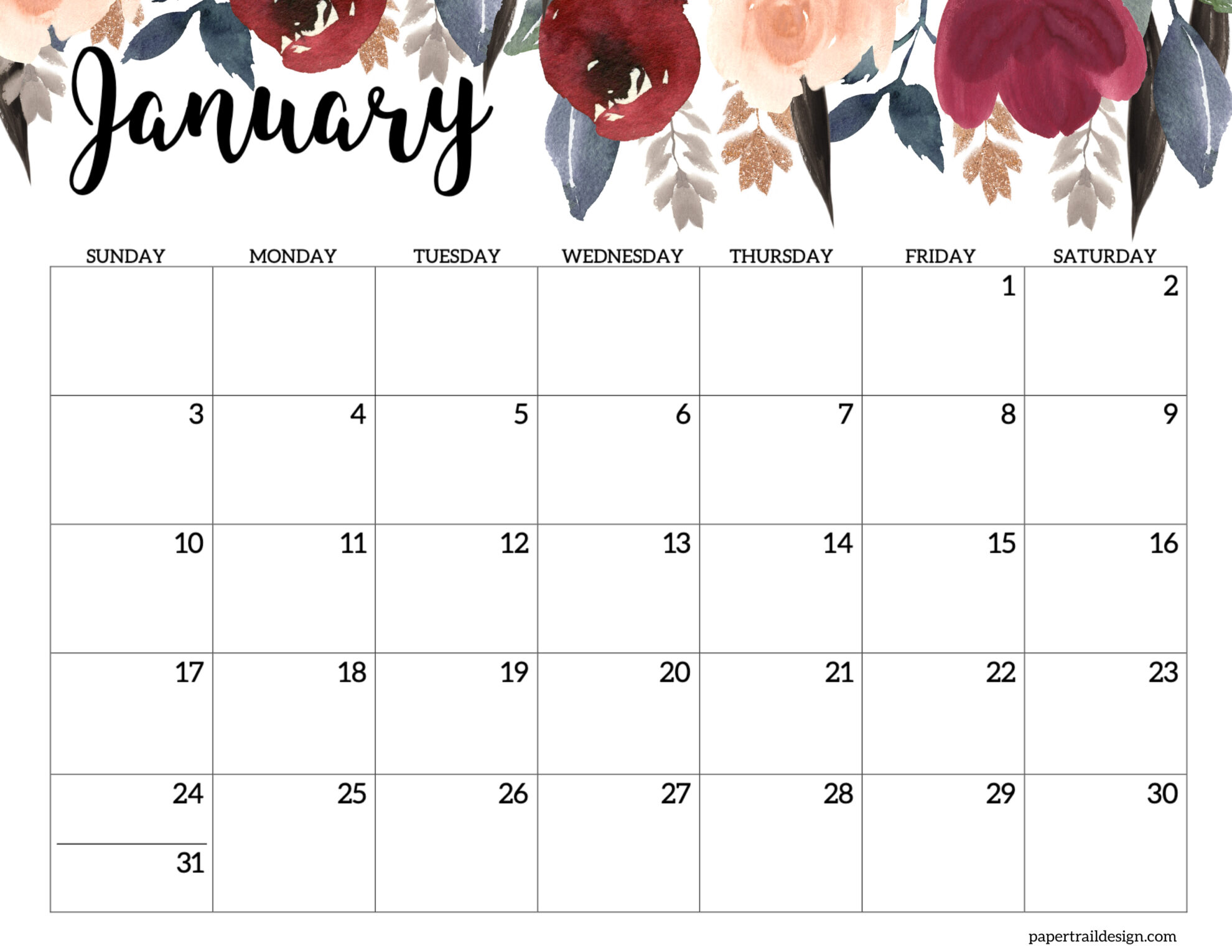 - January 2027 Calendar – Horizontal Floral