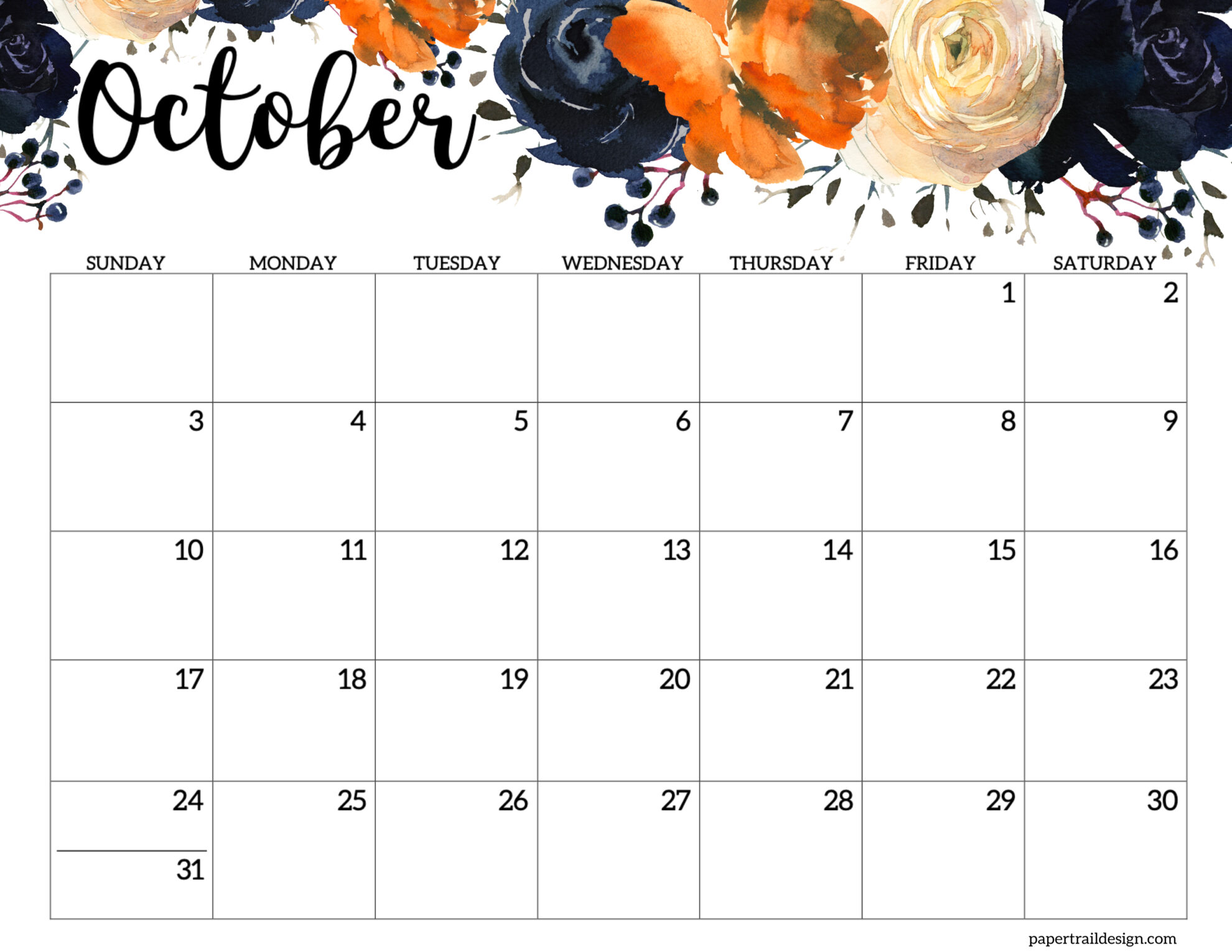 - October 2027 Calendar – Horizontal Floral