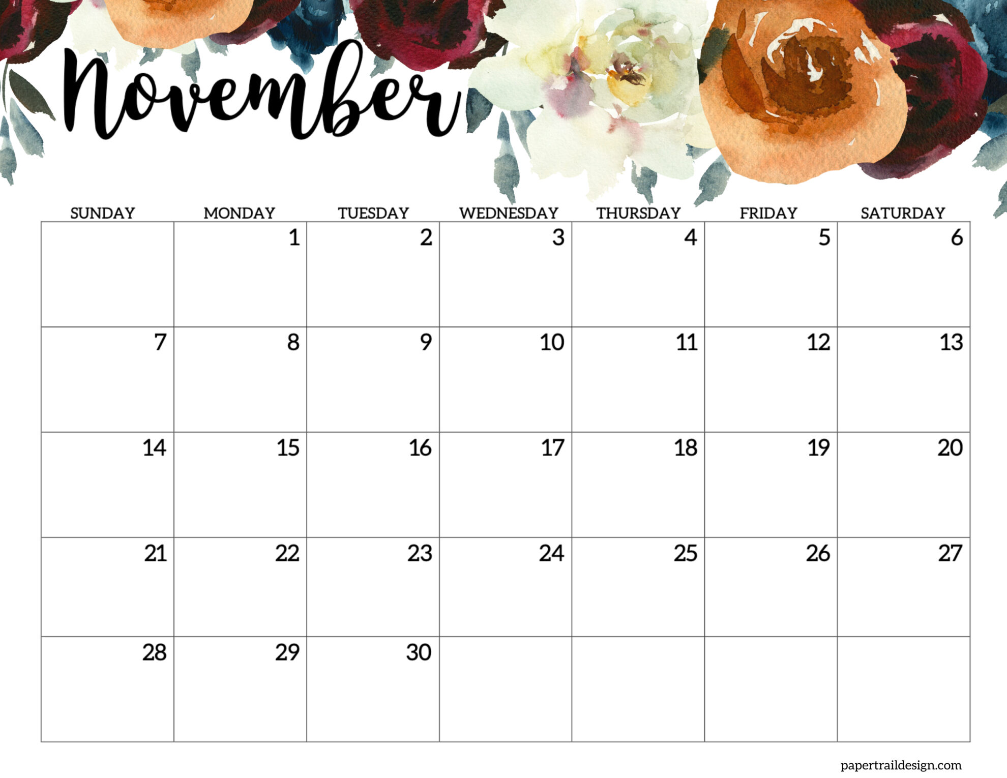 - November 2027 Calendar – Horizontal Floral