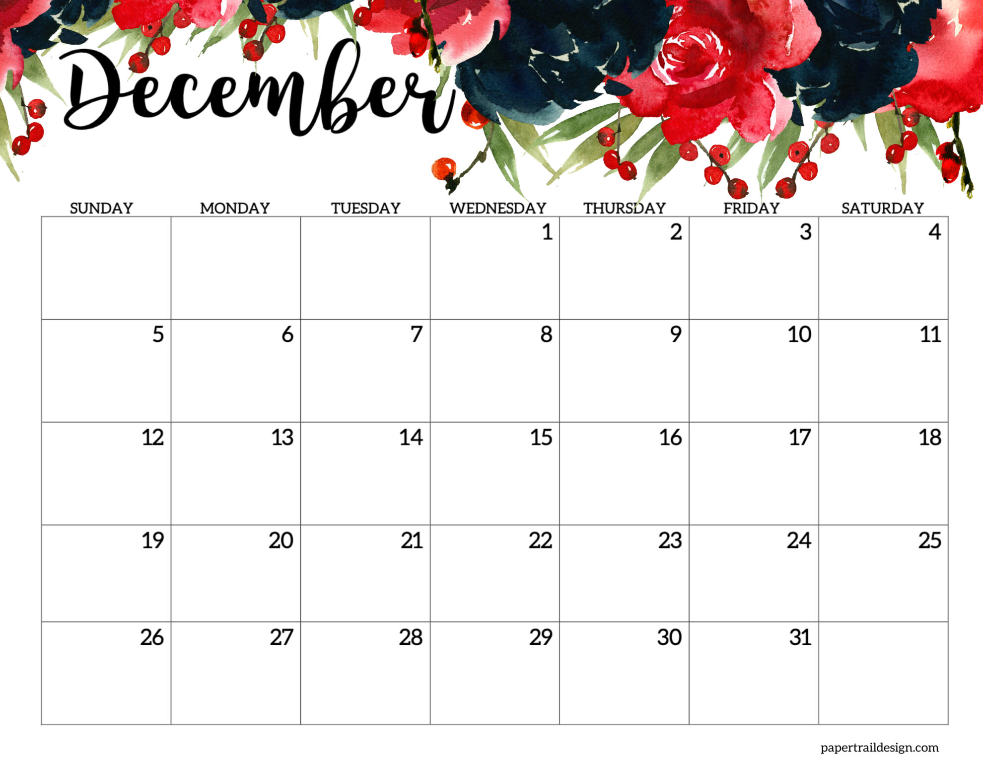 - December 2027 Calendar – Horizontal Floral