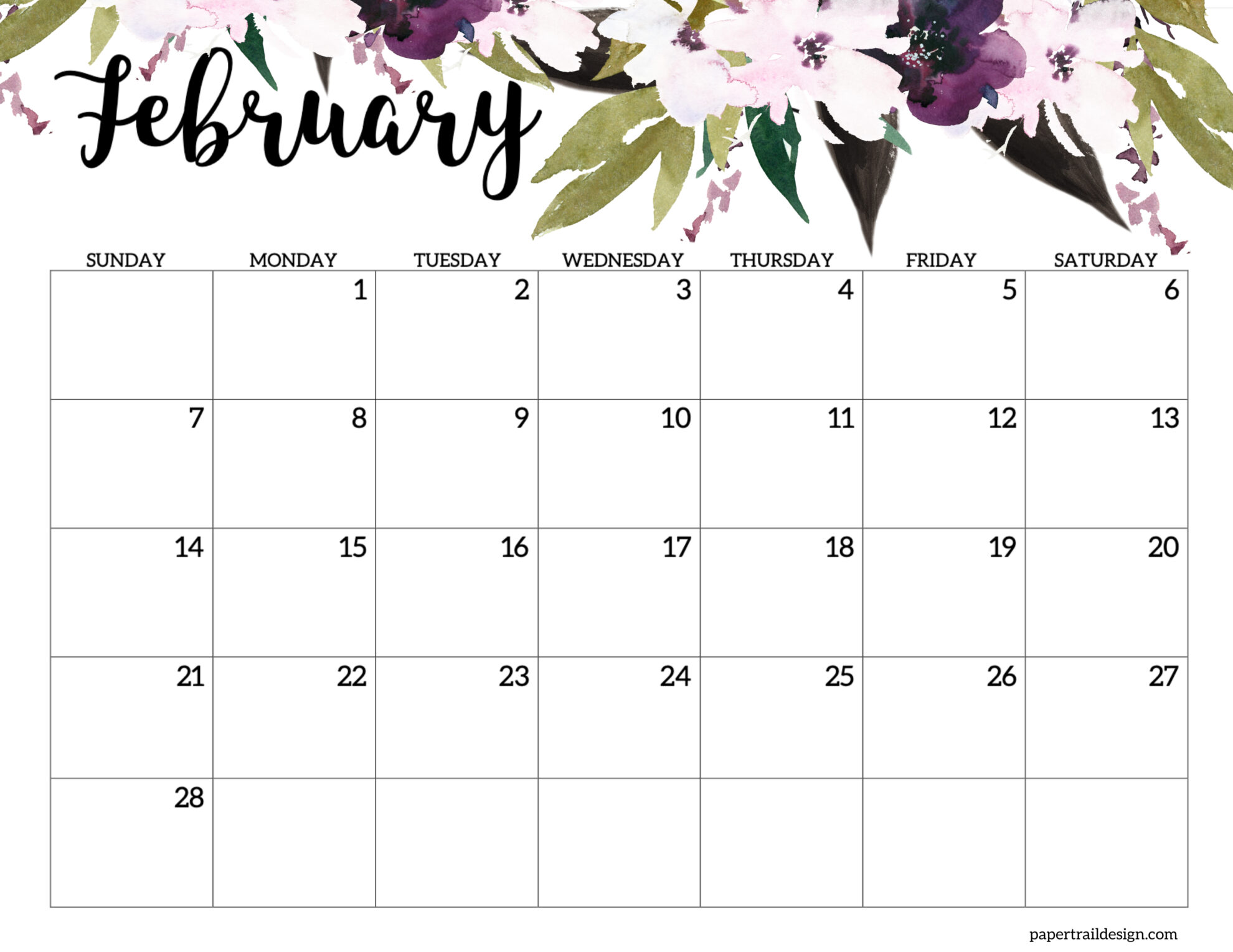 - February 2027 Calendar – Horizontal Floral