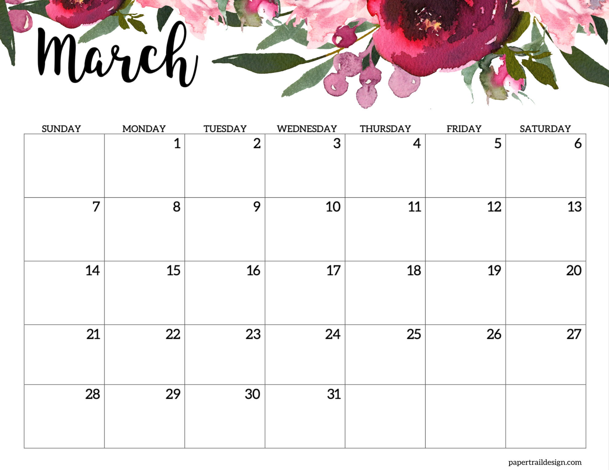 - March 2027 Calendar – Horizontal Floral