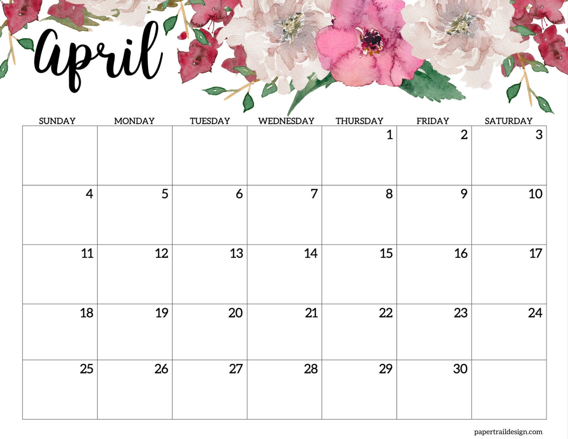 - April 2027 Calendar – Horizontal Floral