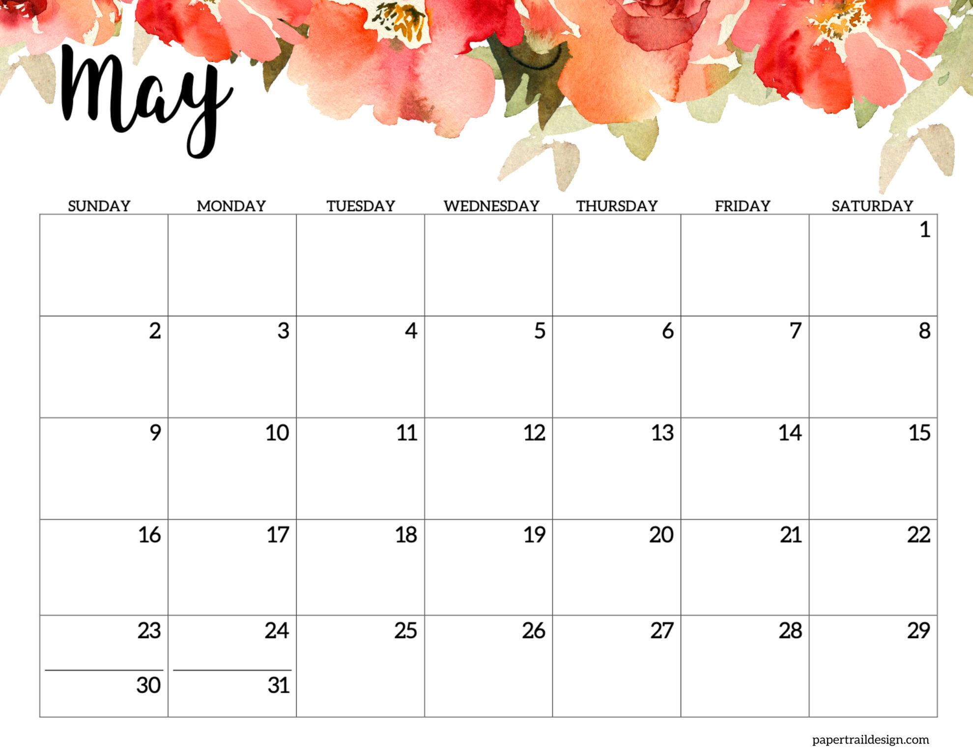 - May 2027 Calendar – Horizontal Floral