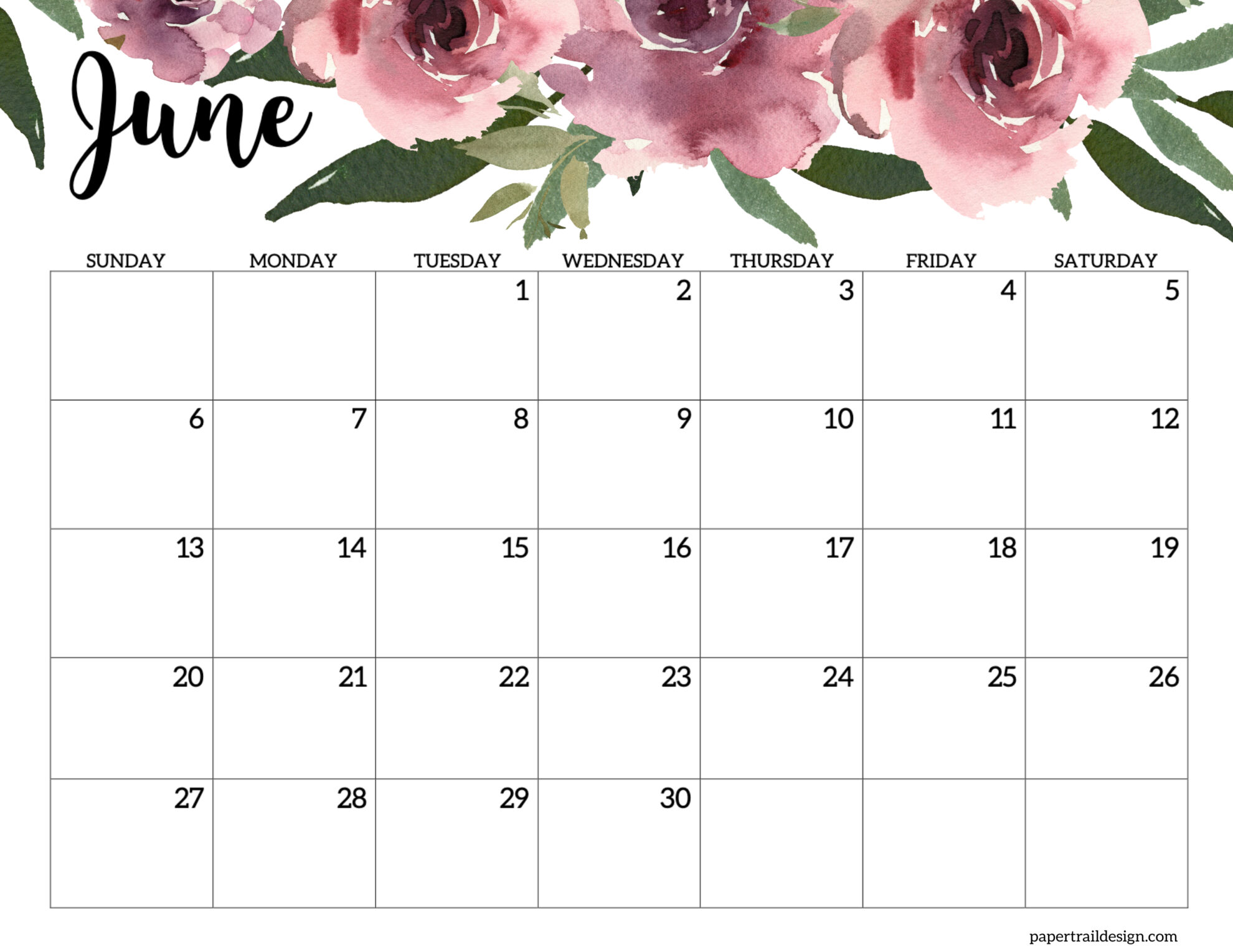 - June 2027 Calendar – Horizontal Floral