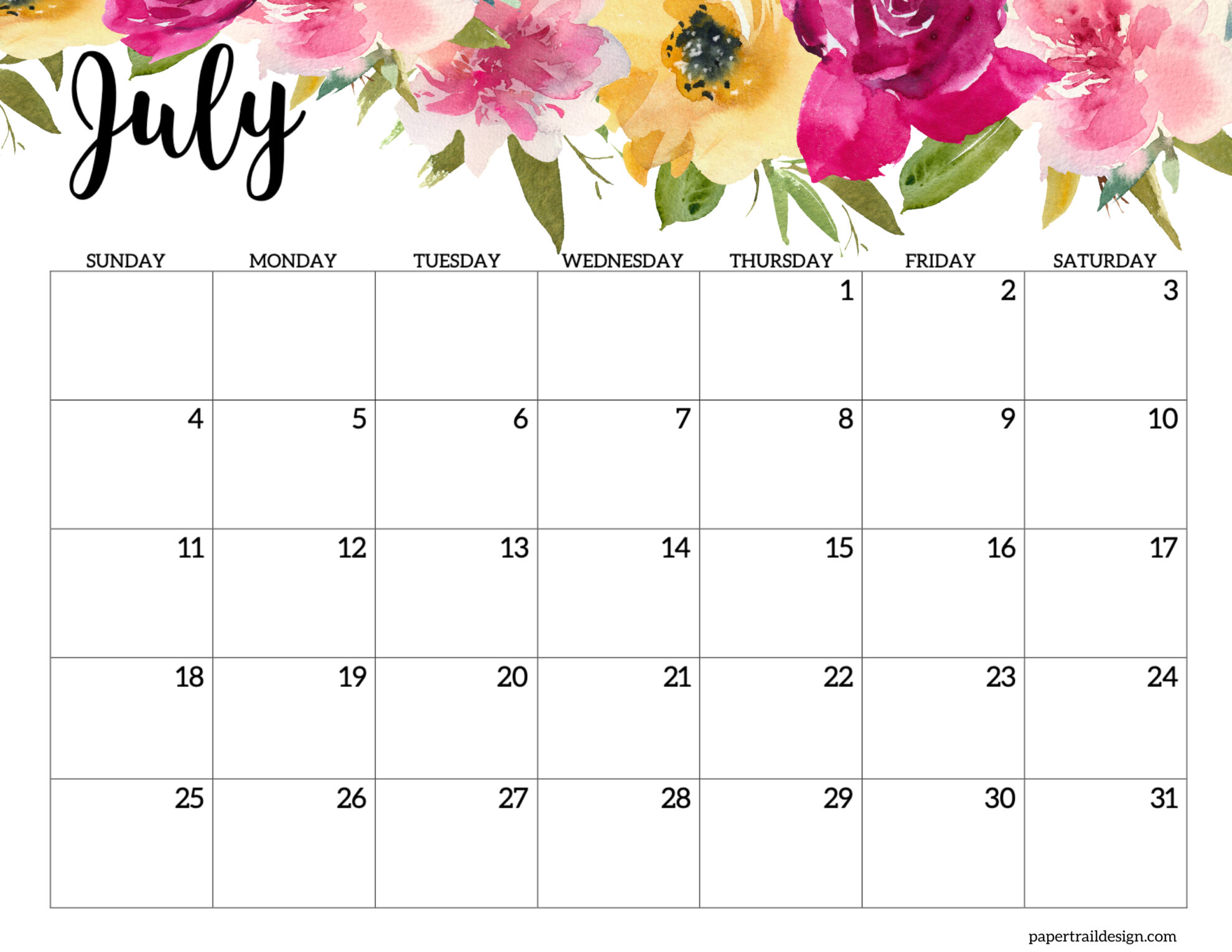 - July 2027 Calendar – Horizontal Floral