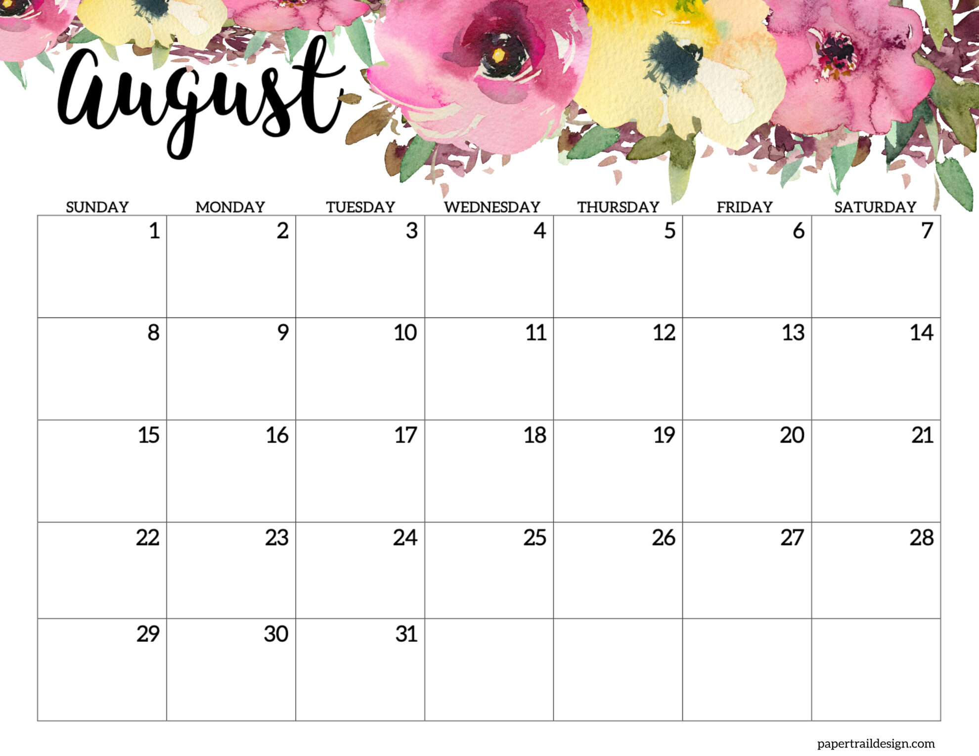 - August 2027 Calendar – Horizontal Floral