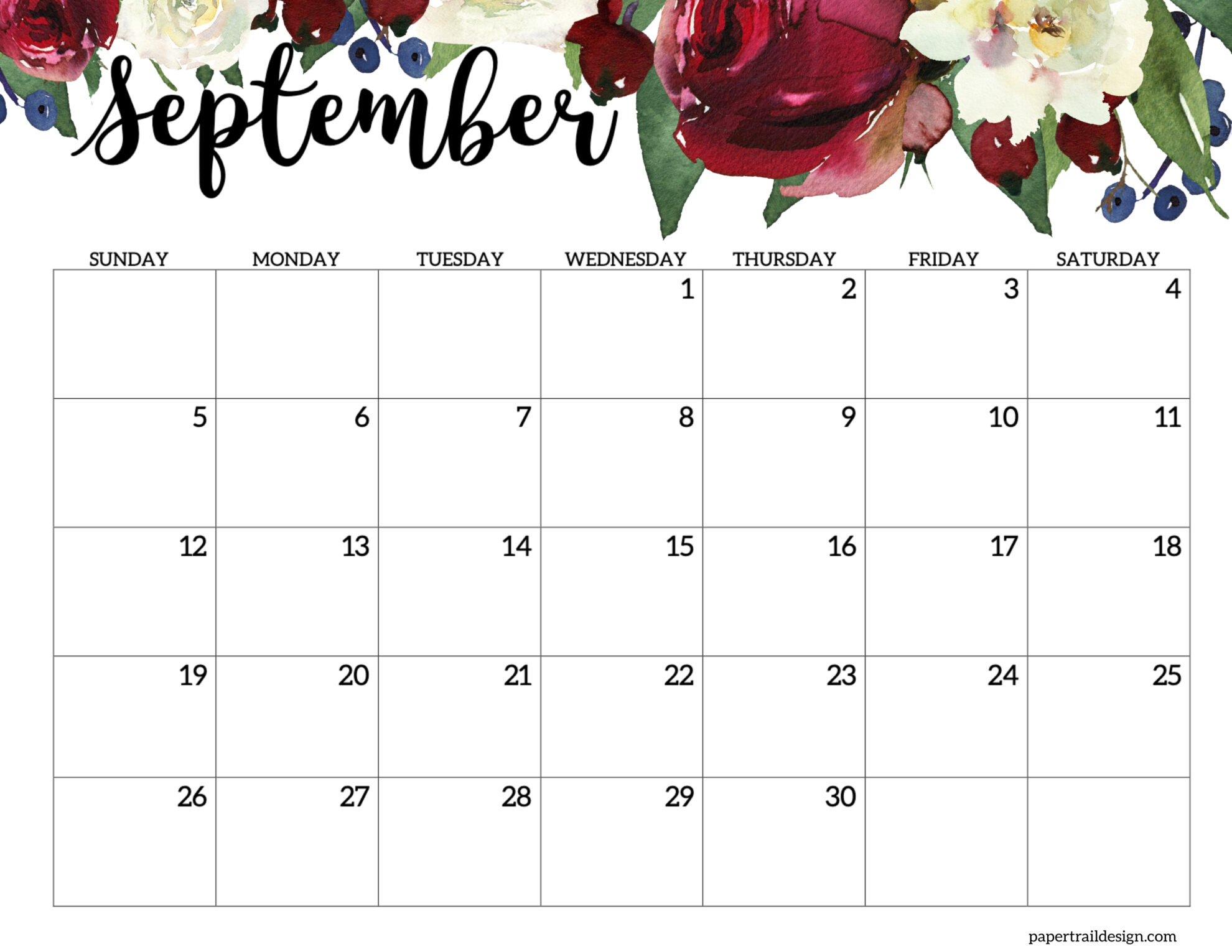 - September 2027 Calendar – Horizontal Floral